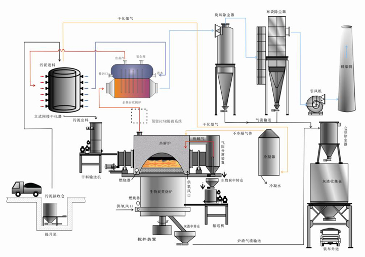 獨(dú)一無(wú)二的焚燒裝置結(jié)構(gòu)和干燥裝置設(shè)計(jì),可使含水率40%的污泥完全燃燒,燃燒溫度高達(dá)850~1100℃。