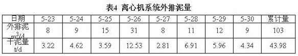 2009年4月24日,新建臥螺離心機項目投入試運行,試運行工藝流程大致同圖2,離心機上清濾液不經(jīng)過溢流水箱和溢流水泵到16米沉降槽,直接經(jīng)過排水管排入下水道。