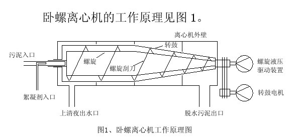 臥螺離心脫水機(jī)具有分離效果良好、工作效率高、使用管理維護(hù)簡單方便的特點,并且臥螺離心脫水機(jī)采用全封閉的結(jié)構(gòu),避免了帶式壓慮機(jī)存在的種種弊端(如現(xiàn)場環(huán)境惡劣、臭味大、大量使用絮凝劑和清洗水、設(shè)備體積大、日常使用維護(hù)麻煩),目前在污水處理、食品、醫(yī)藥、化工等領(lǐng)域的固液分離中得到廣泛的應(yīng)用,本研究根據(jù)生產(chǎn)實踐,探索了速差、工作壓力等控制條件對污泥脫水效果影響的變化規(guī)律,總結(jié)了使離心機(jī)的穩(wěn)定運(yùn)行的調(diào)整方法。