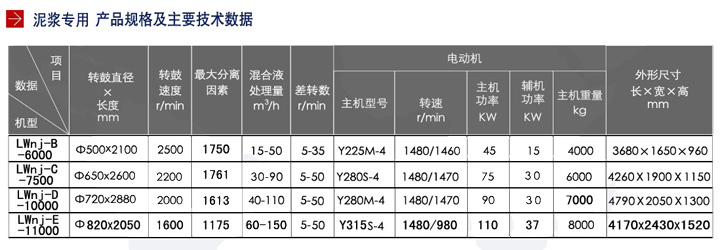 本公司生產(chǎn)的LWNJ系列產(chǎn)品結(jié)構(gòu)合理,技術(shù)先進(jìn),制作精細(xì),對泥漿分離適用性大,分離效果好。